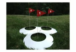 • 3 Hole Set includes 3 numbered flags, 2 rugged Yard Golf clubs (34” length) and 2 oversized Yard Golf balls